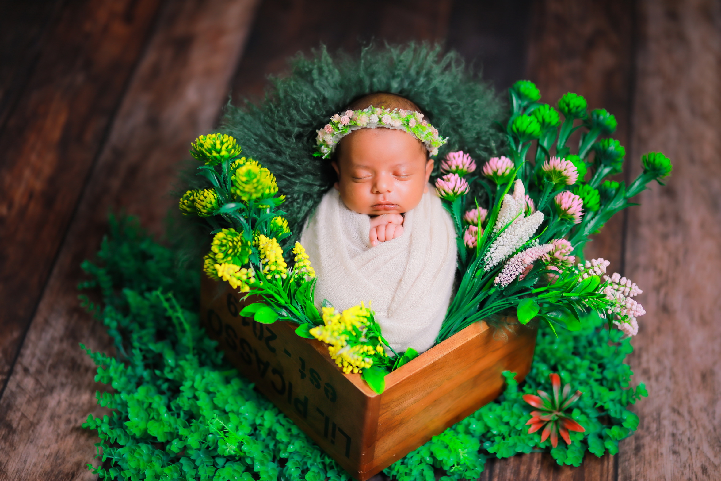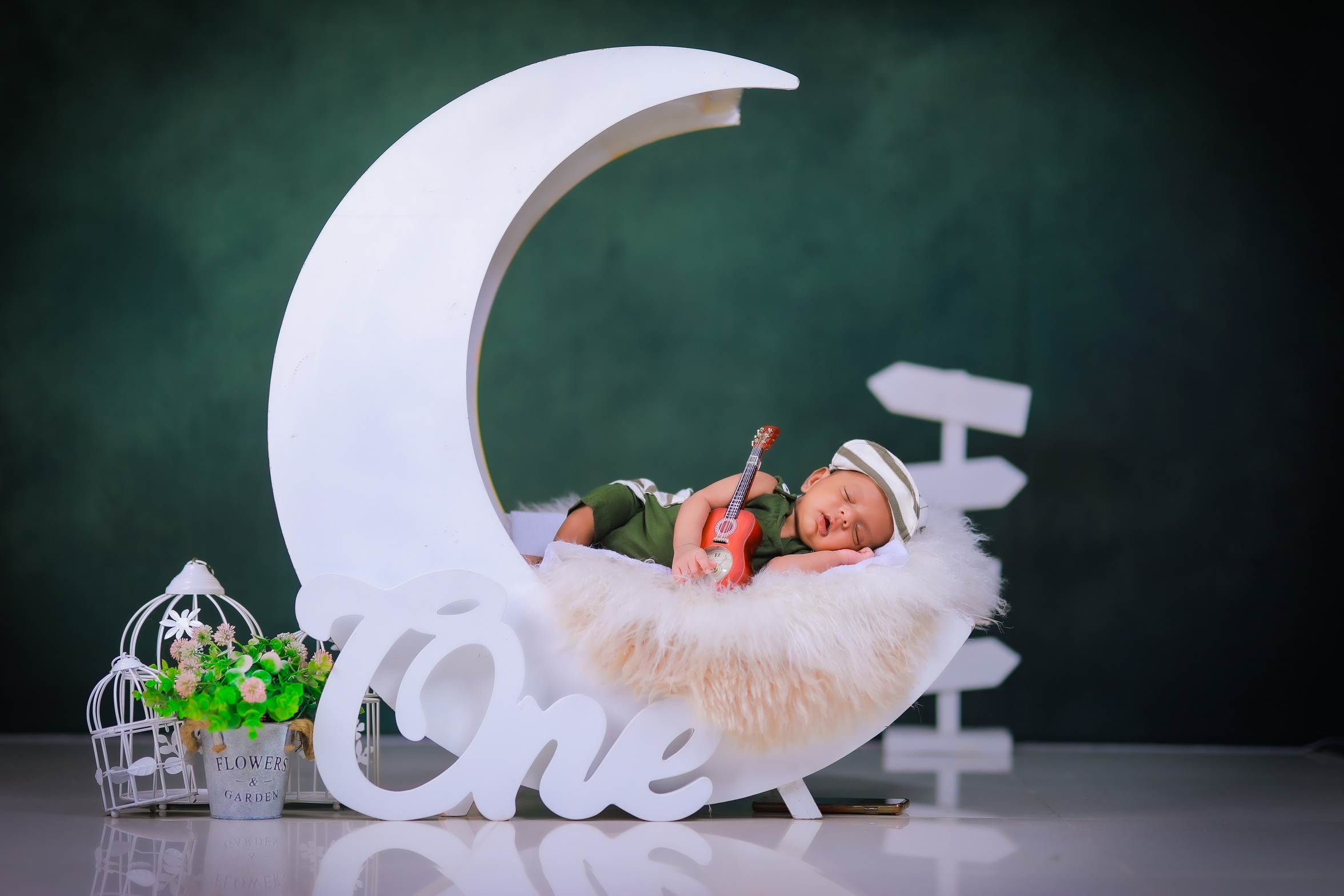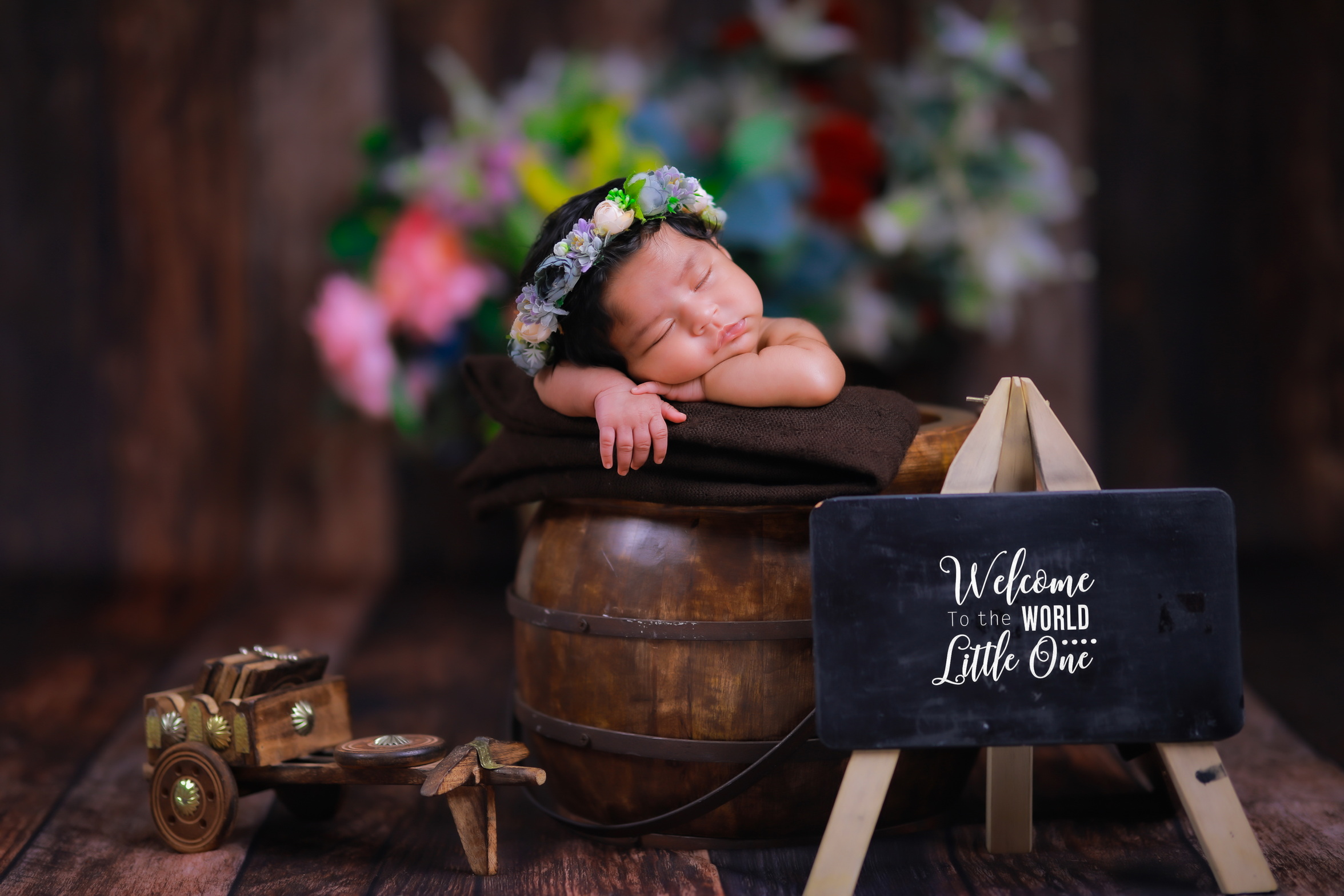 Newborn photography capturing precious moments of babies aged 10–25 days with gentle poses, soft props, and timeless, heartwarming themes.